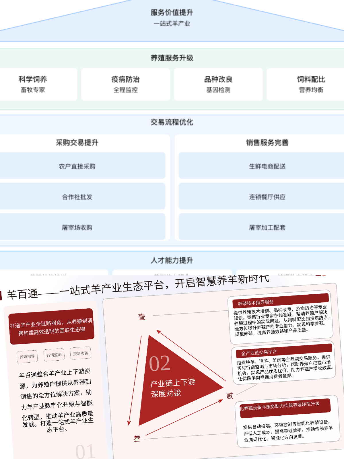 公司核心运营的“羊百通”平台涵盖五大核心服务板块,形成羊产业全生态服务矩阵: